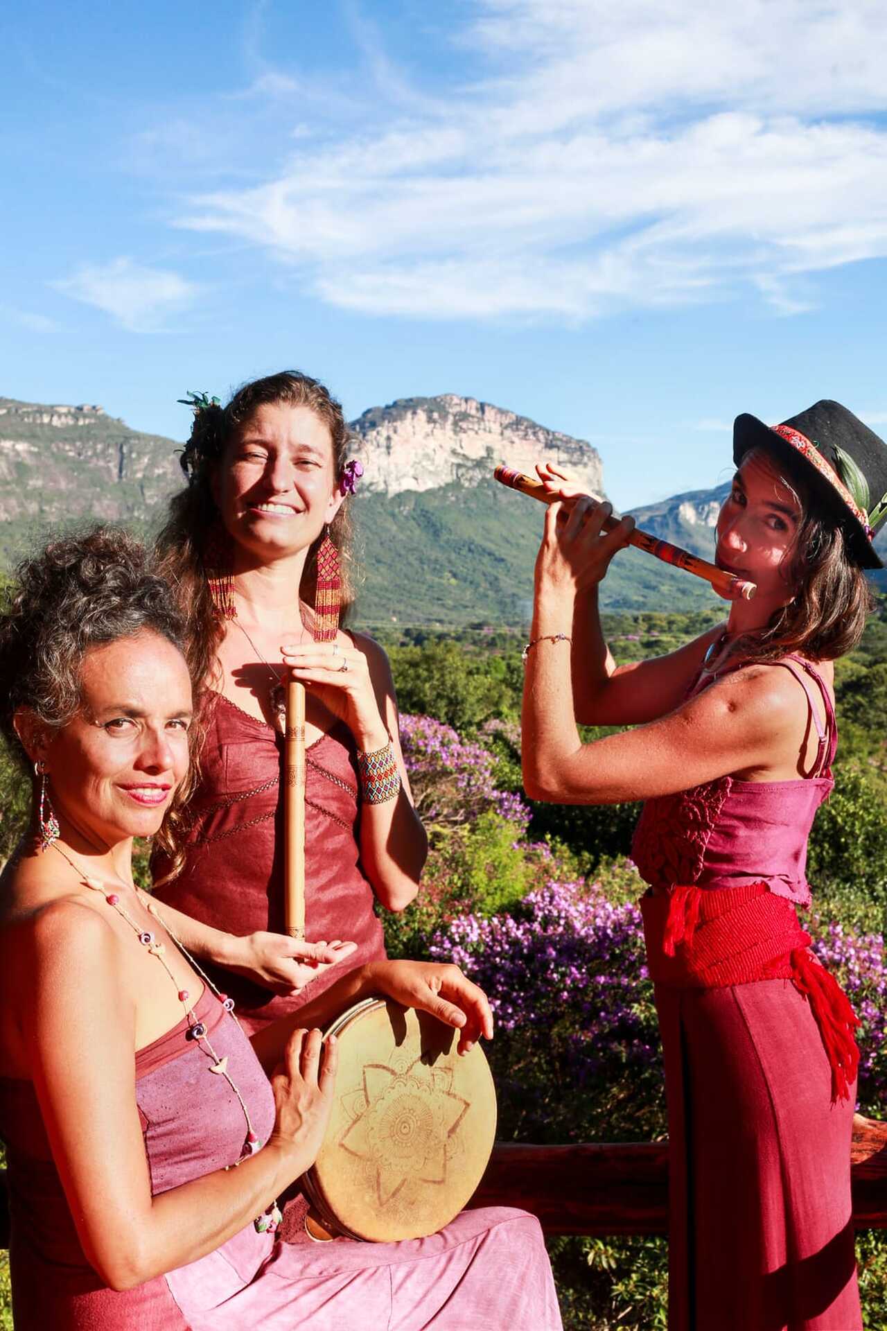 Originally from Vale do Capão, in the Chapada Diamantina (Bahia, Brasil), they decided in 2023 to spread their music around the world, sharing a beautiful energy and messages that touch through their music. Their repertoire combines their own compositions and versions of traditional genres such as Forró, Coco de Roda, Frevo, Samba de Roda, Ijexá, Colombian Cumbia, Cuban Rumba and Andean rhythms, inviting audiences to a sonic experience full of energy, color and culture.